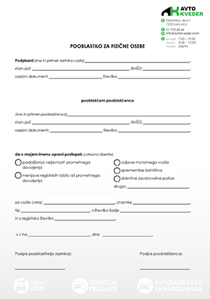 V našem servisu lahko opravite tudi vse registracijske postopke, odjavo vozila, vse v povezavi z avtomobilskimi tablicami.